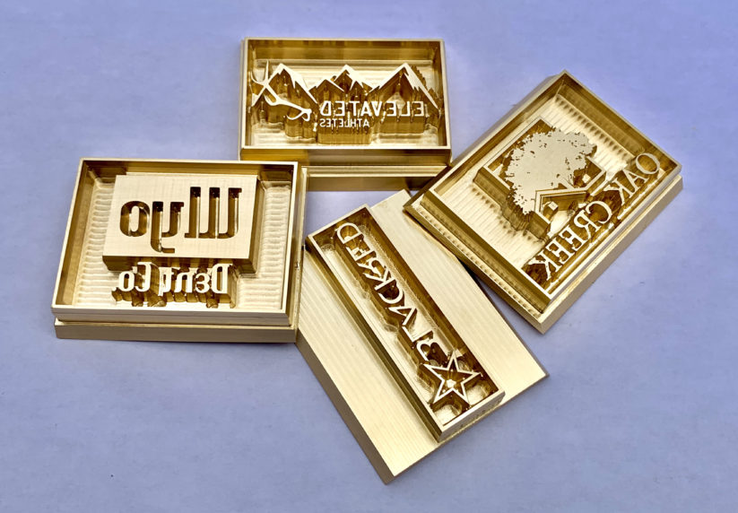 The types of engravings for embossing and foil stamping products varies as much as the type of paper used. Brass dies for embossing and combination foil stamping include a range from flat stamping foil images to multi-level, sculptured designs. Brass is a superior material for both machine work and hand sculpting, and is the best choice for combination foil stamping and embossing designs.